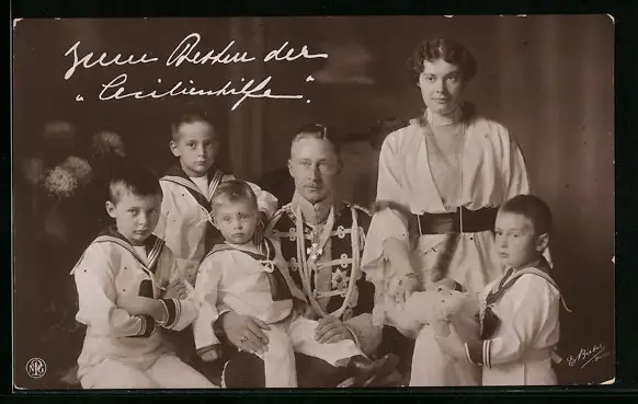 AK Kronprinzessin Cecilie mit dem Ehegatten in Uniform und vier Kindern abgelichtet