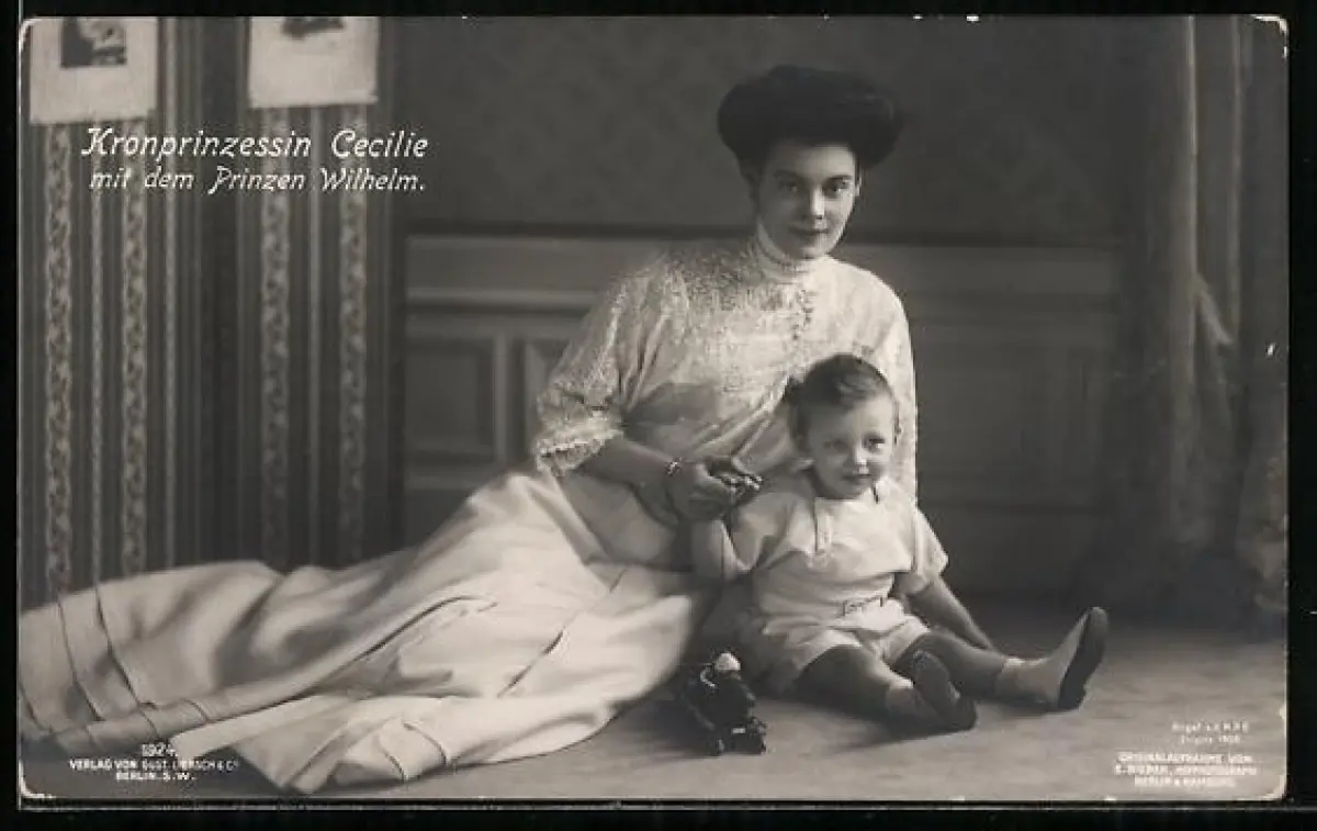 AK Kronprinzessin Cecilie mit dem Prinzen Wilhelm, Eisenbahn