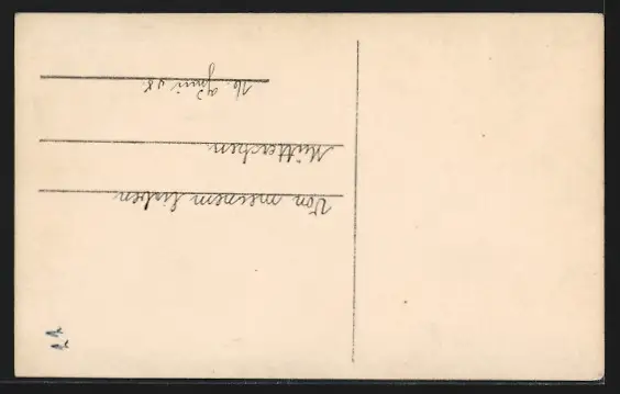 Personenbezogene Daten auf der Rückseite der Karte wurden durch blauen Textmarker unkenntlich gemacht. Die blauen Stellen sind auf die Vorderseite durchgeweicht und wirken sich negativ auf das Postkartenfoto aus