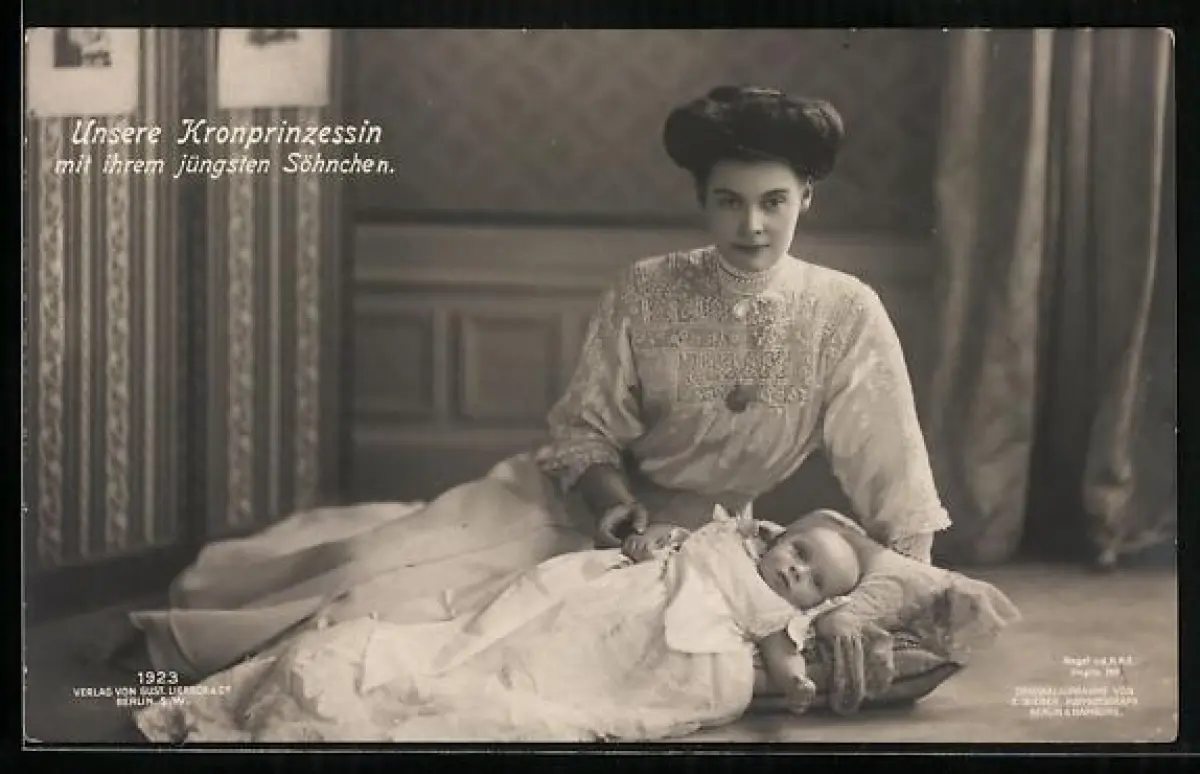 AK Kronprinzessin Cecilie mit ihrem jüngsten Söhnchen auf dem Boden