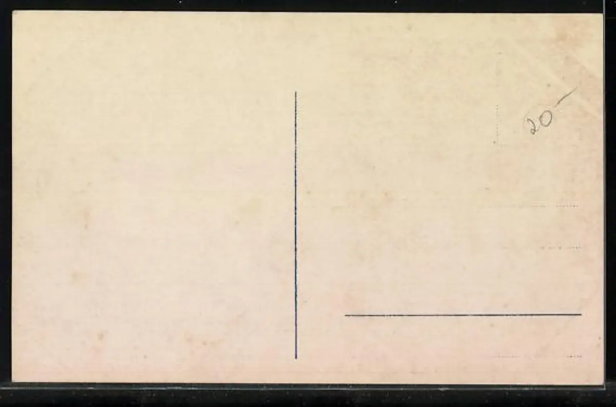 Personenbezogene Daten auf der Rückseite der Karte wurden durch blauen Textmarker unkenntlich gemacht. Die blauen Stellen sind auf die Vorderseite durchgeweicht und wirken sich negativ auf das Postkartenfoto aus