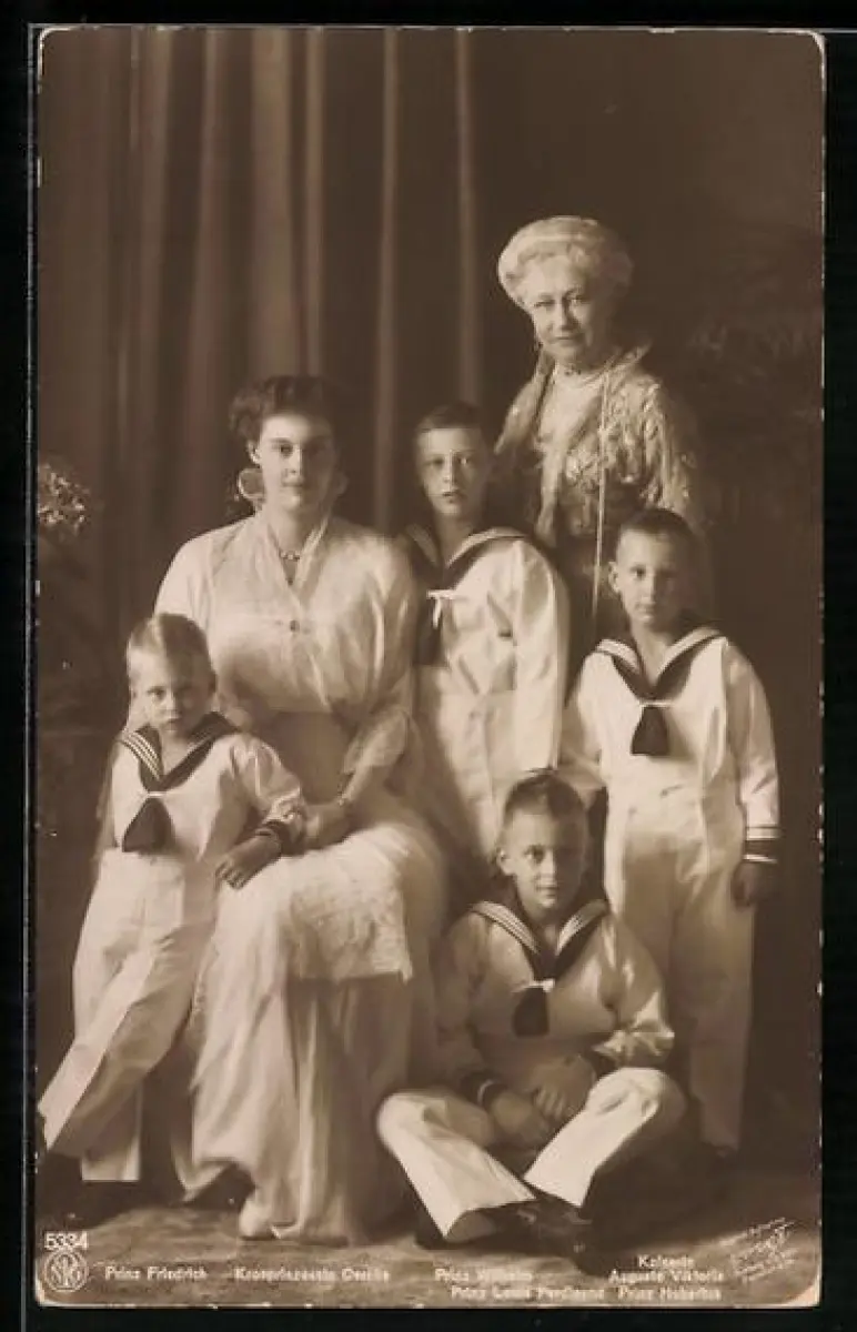 AK Kronprinzessin Cecilie samt Schwiegermutter und Söhnen