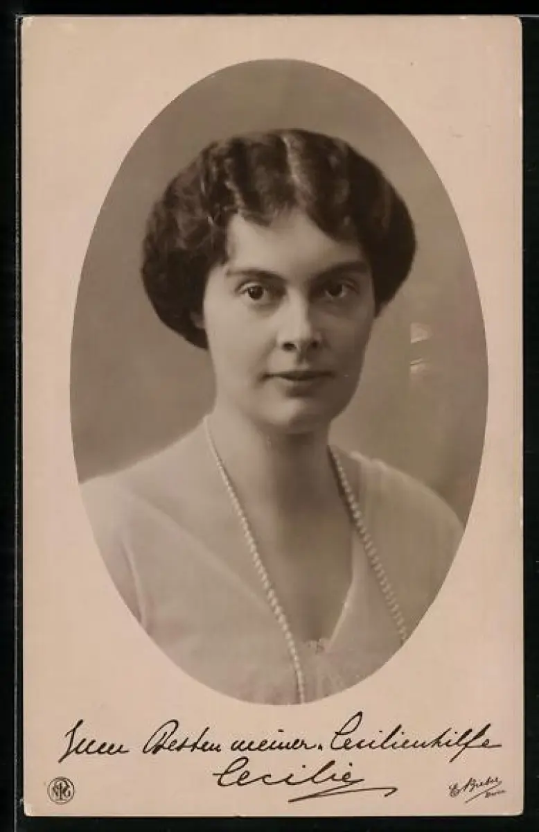 AK Kronprinzessin Cecilie von Preussen mit Schmuck, Brustbild, gerahmte Ansicht