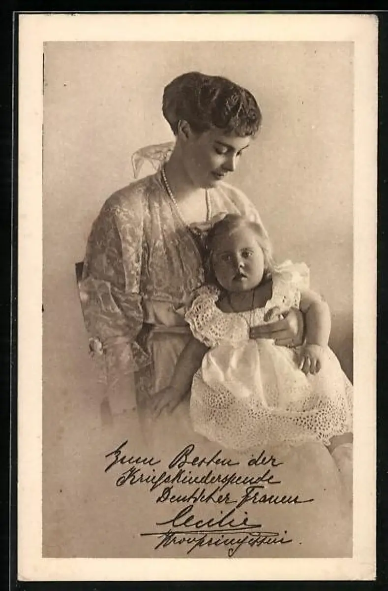 AK Kronprinzessin Cecilie von Preussen mit ihrem Kind im Rüschenkleid