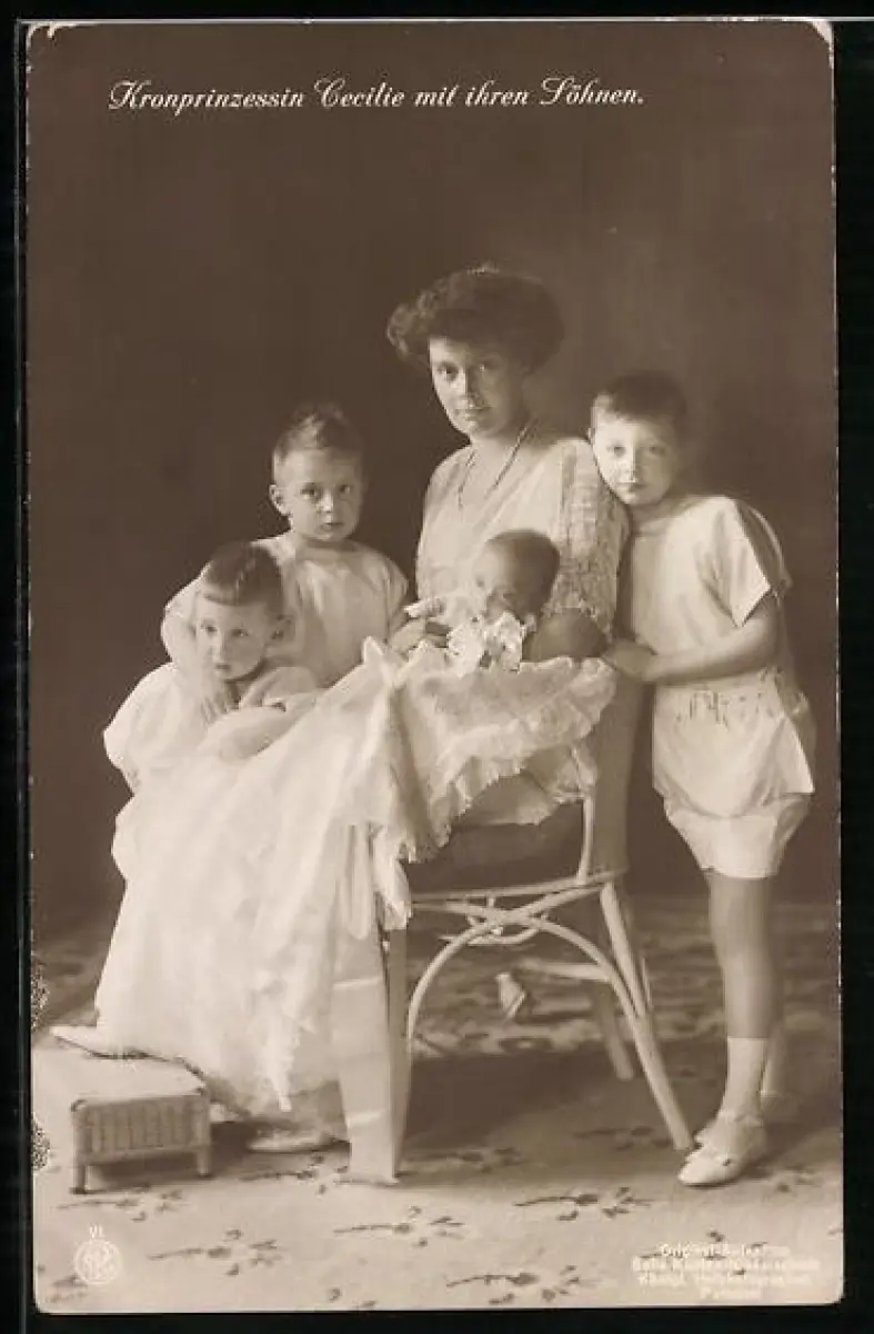 AK Kronprinzessin Cecilie von Preussen mit ihren Söhnen