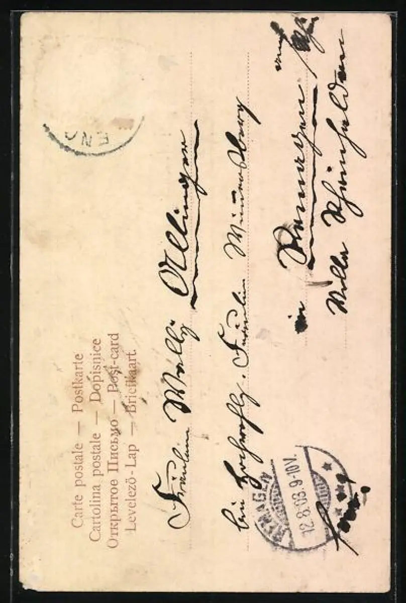 alte Ansichtskarte, gelaufen 1903, Briefmarke entfernt, rückseitig Oberflächenschaden, guter Zustand