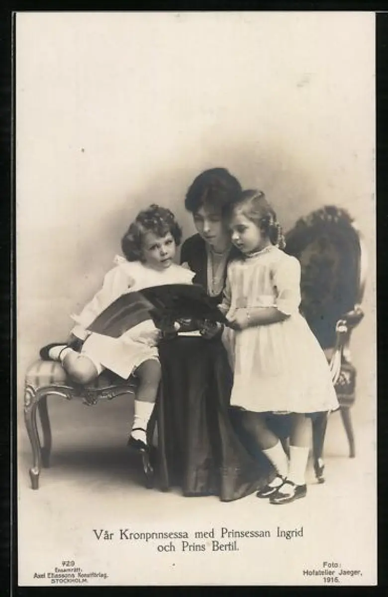 AK Kronprinzessin von Schweden mit Prinzessin Ingrid und Prinz Bertil