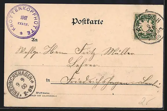 alte Ansichtskarte, gelaufen 1900, guter Zustand