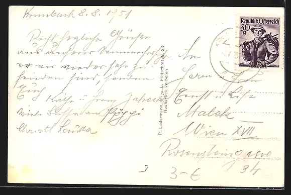 alte Ansichtskarte, gelaufen 1951, guter Zustand