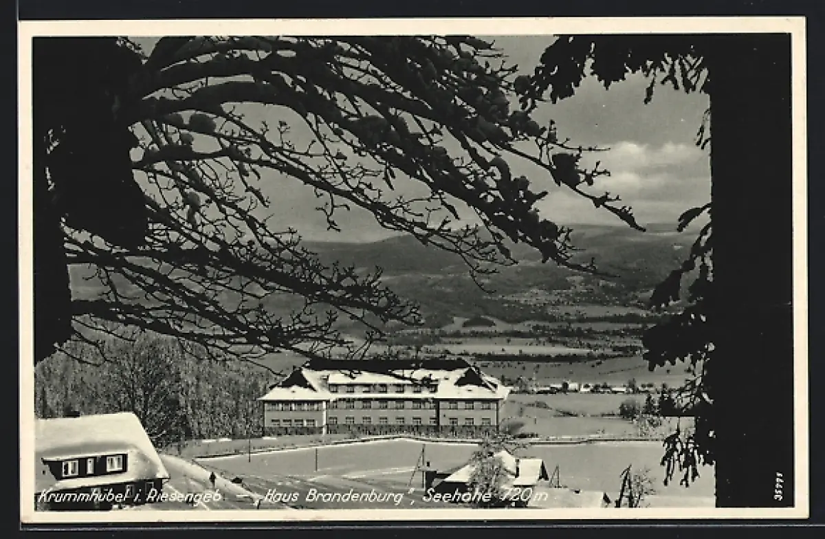 AK Krummhübel i. Riesengeb., Gasthaus Brandenburg im Winter