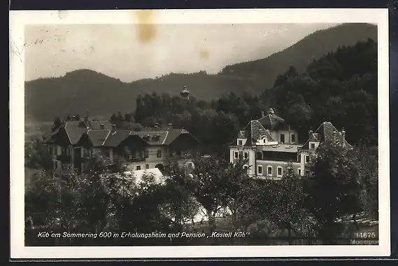 AK Küb am Semmering, Erholungsheim-Pension Kastell Küb aus der Vogelschau