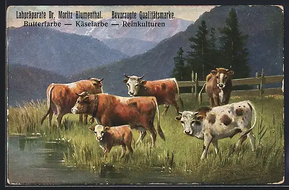 AK Kühe auf der Weide, Reklame für Labpräparate Dr. Moritz Blumenthal