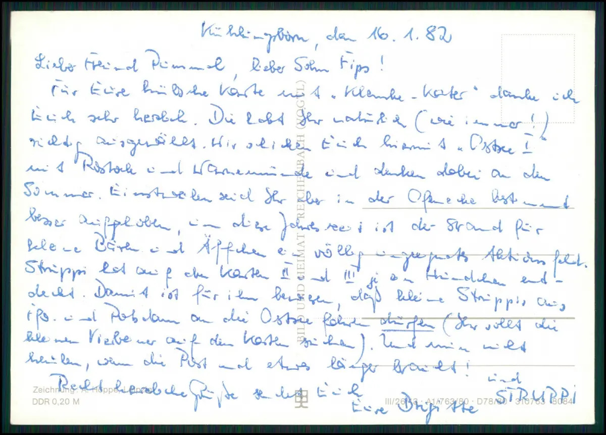 Handschriftlicher Gruß datiert 16. Januar 1982, adressiert aus Kühlungsborn, typisch für DDR-Korrespondenz jener Zeit.