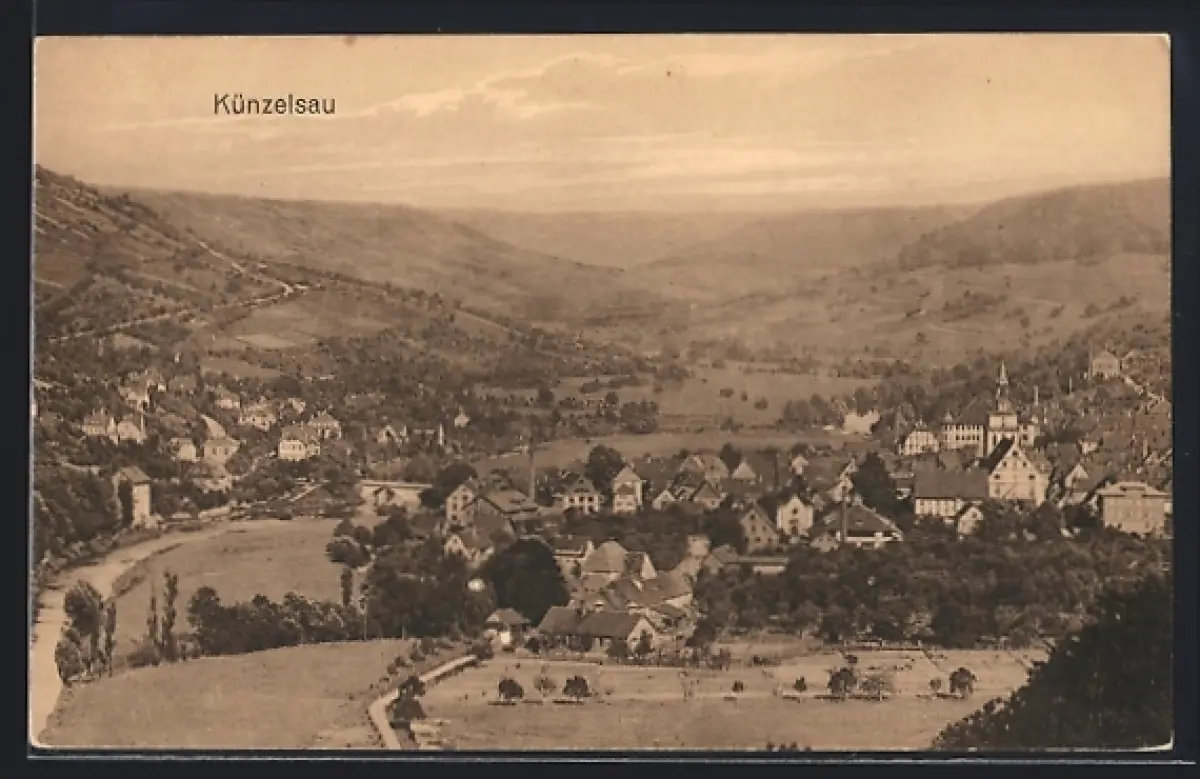 AK Künzelsau, Panoramaansicht des Ortes im Tal