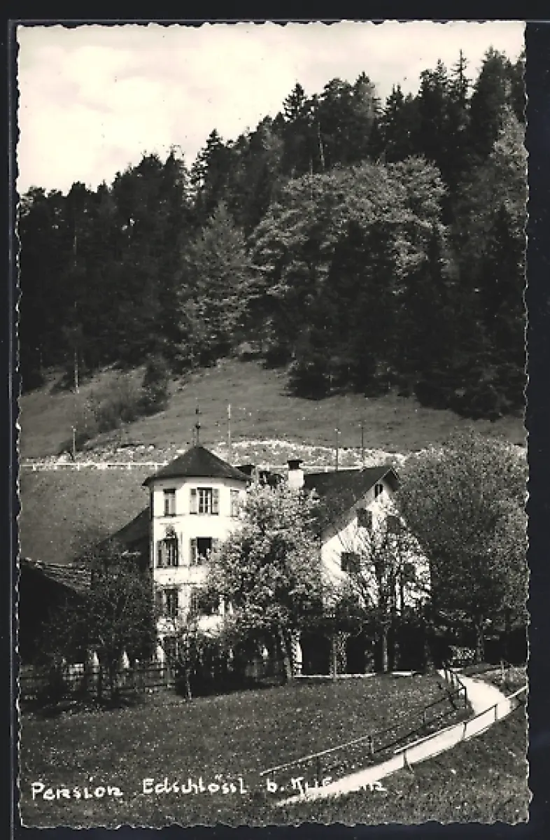 AK Kufstein /Tirol, Pension Edschlössl mit Strasse