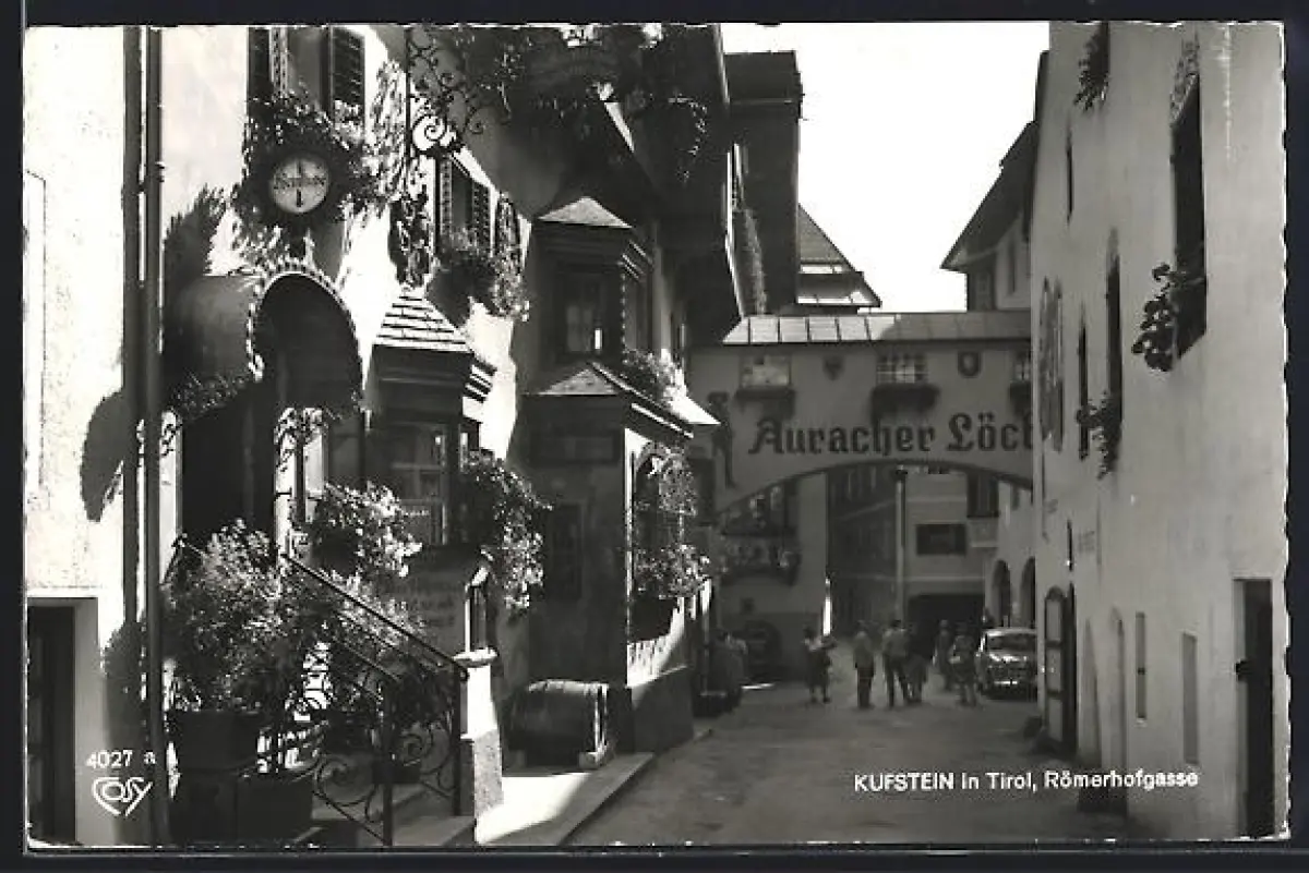 AK Kufstein in Tirol, Römerhofgasse mit Weinstube und Gaststätte Auracher Löchl