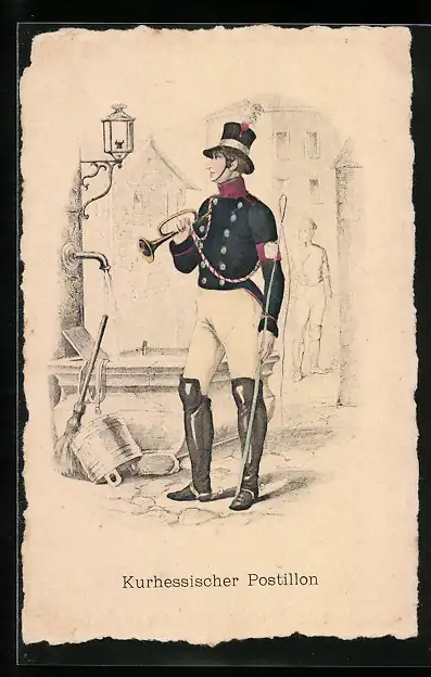 AK Kurhessischer Postillon in Uniform, Deutscher Post-Almanach 1842 /53