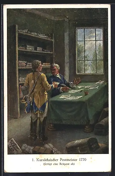 AK Kursächsischer Postmeister fertigt eine Reitpost ab, 1770