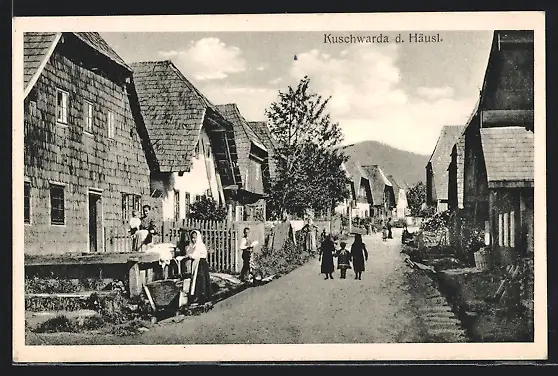 AK Kuschwarda d. Häusl., Anwohner in der Strasse