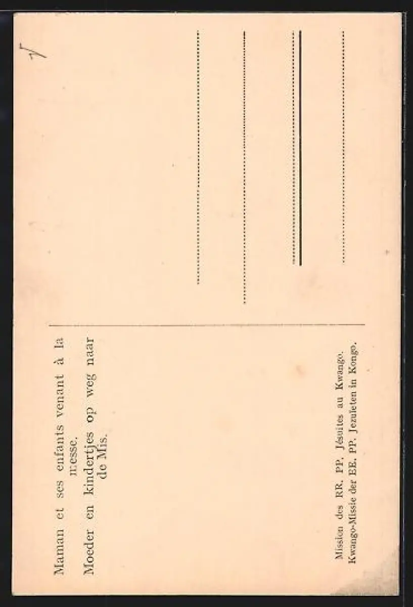 AK Kwango, Mission des RR. PP. Jésuites, Maman et ses enfants venant à la messe