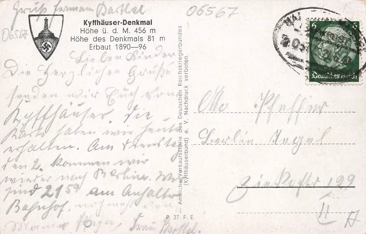AK Kyffhäuserland Kyffhäuser Denkmal Thüringen 1932 gelaufen Postkarte
