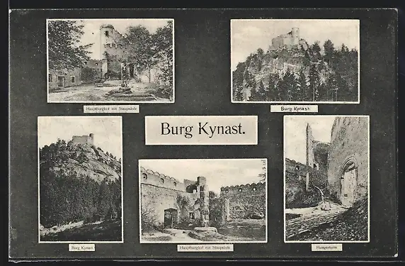 AK Kynast, Burg, Hauptburghof mit Staupsäule, Hungerturm, Totalansichten