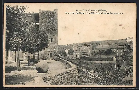 AK L`Arbresle, Cour du Château et bolide trouvé dans les environs