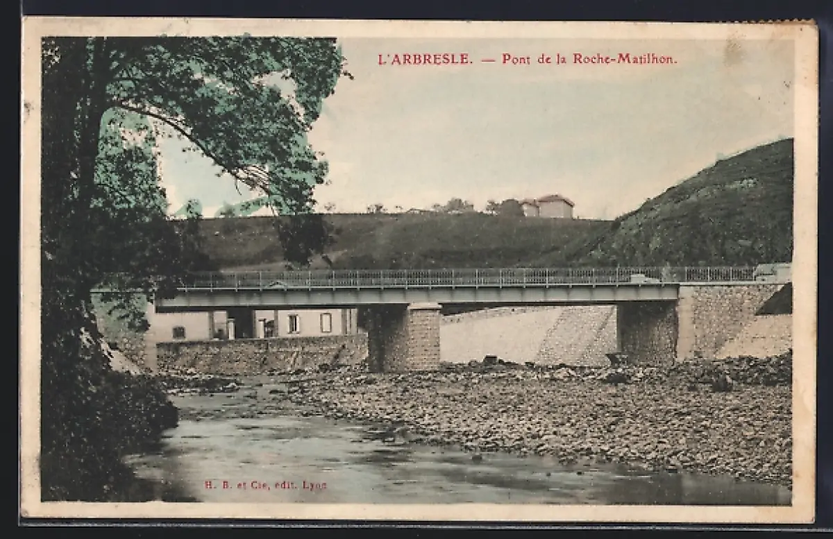 AK L`Arbresle, Pont de la Roche-Matilhon sur la rivière avec paysage vallonné en arrière-plan