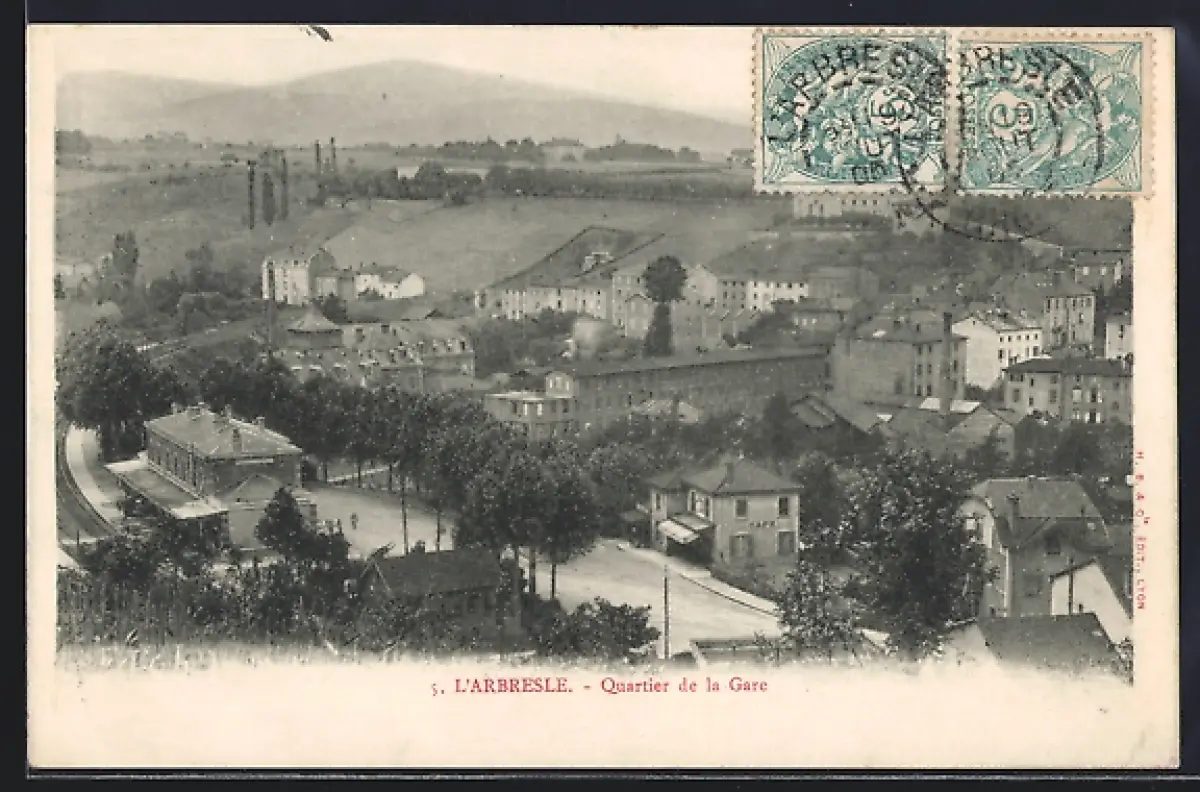 AK L`Arbresle, Quartier de la Gare et vue sur le village environnant
