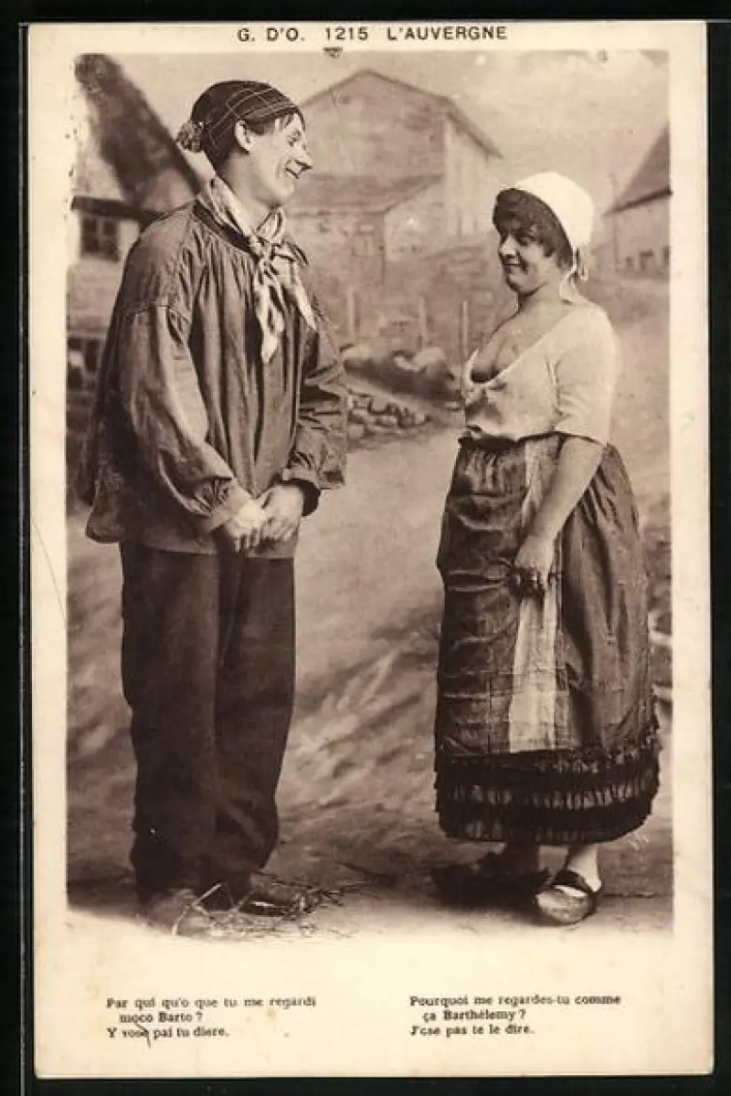 AK L`Auvergne, Frau begegnet Mann auf der Strasse, Scherz