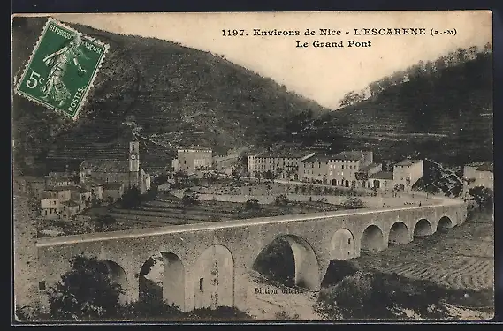 AK L`Escarène, Le Grand Pont et vue du village en arrière-plan