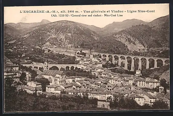 AK L`Escarene, Vue generale et Viaduc, Ligne Nice-Coni, General view and Viaduct, Nice-Coni Line