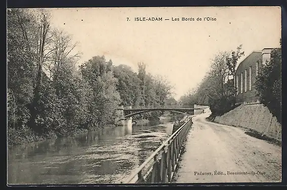 AK L`Isle-Adam, Les Bords de l`Oise avec vue sur le pont et la route bordée d`arbres