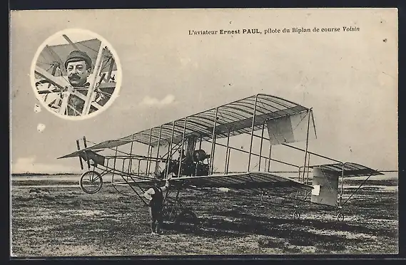AK L`aviateur Ernest Paul, pilote du Biplan de course Voisin, Flugzeug