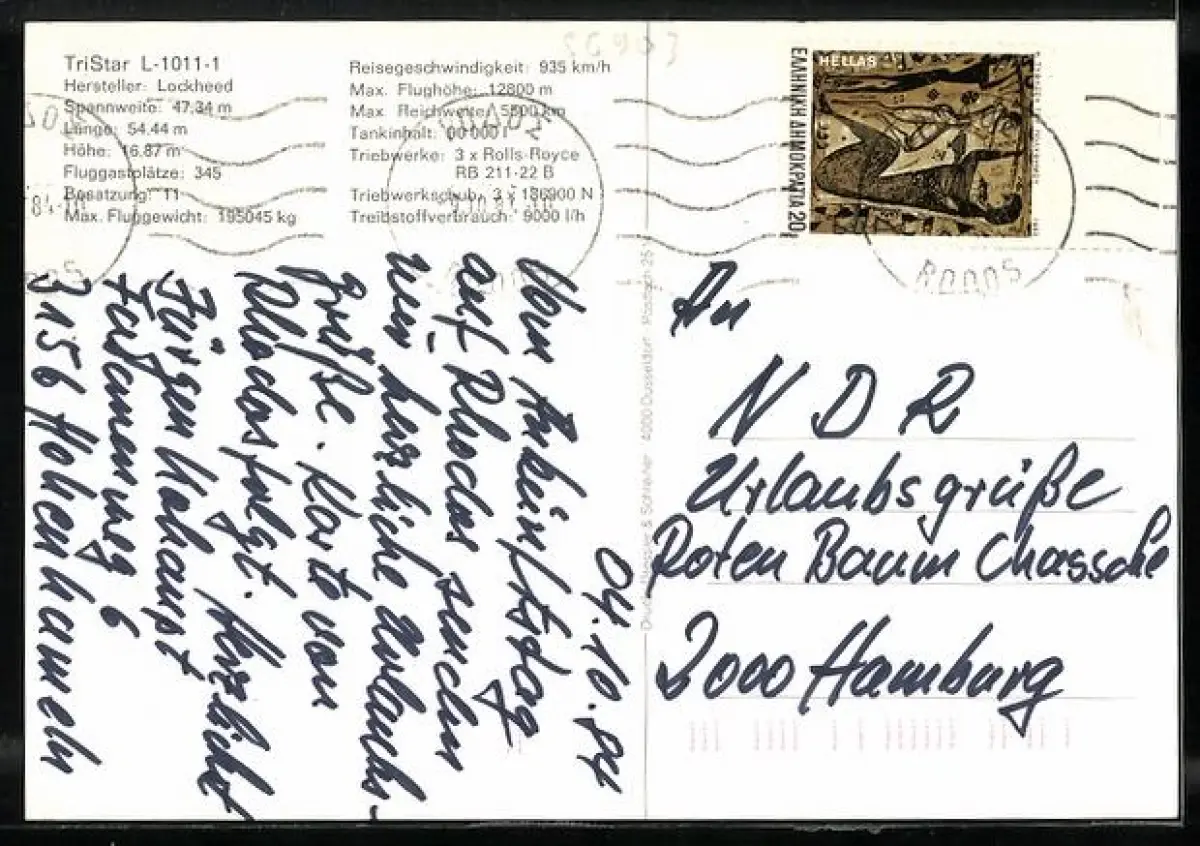 alte Ansichtskarte, gelaufen 1984, Stempelspur, guter Zustand