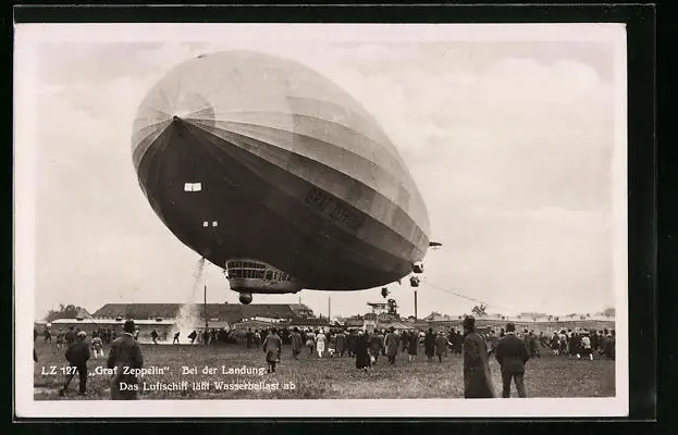 AK LZ 127 Graf Zeppelin bei der Landung, Ablassen von Wasserballast