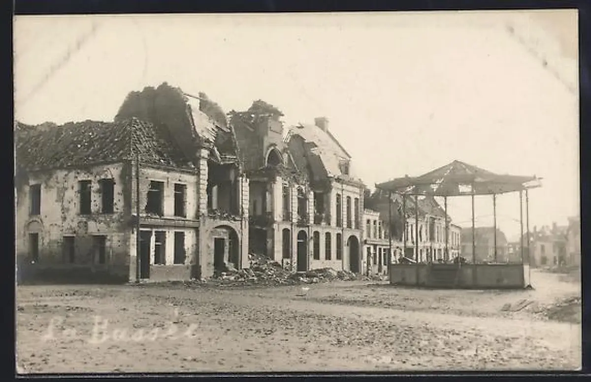 AK La Bassée, Bâtiments en ruine après un bombardement
