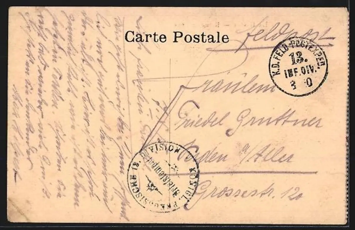 alte Ansichtskarte, gelaufen 1915, Eckknicke re., guter Zustand