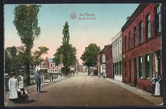 AK La Basseé, Route de Lens, Mutter und Tochter beim Spaziergang