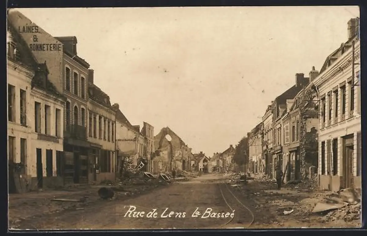 AK La Bassée, Rue de Lens avec bâtiments endommagés