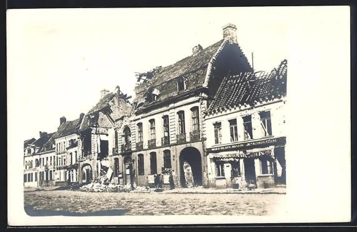 AK La Bassée, Strassenpartie mit zerstörten Häusern