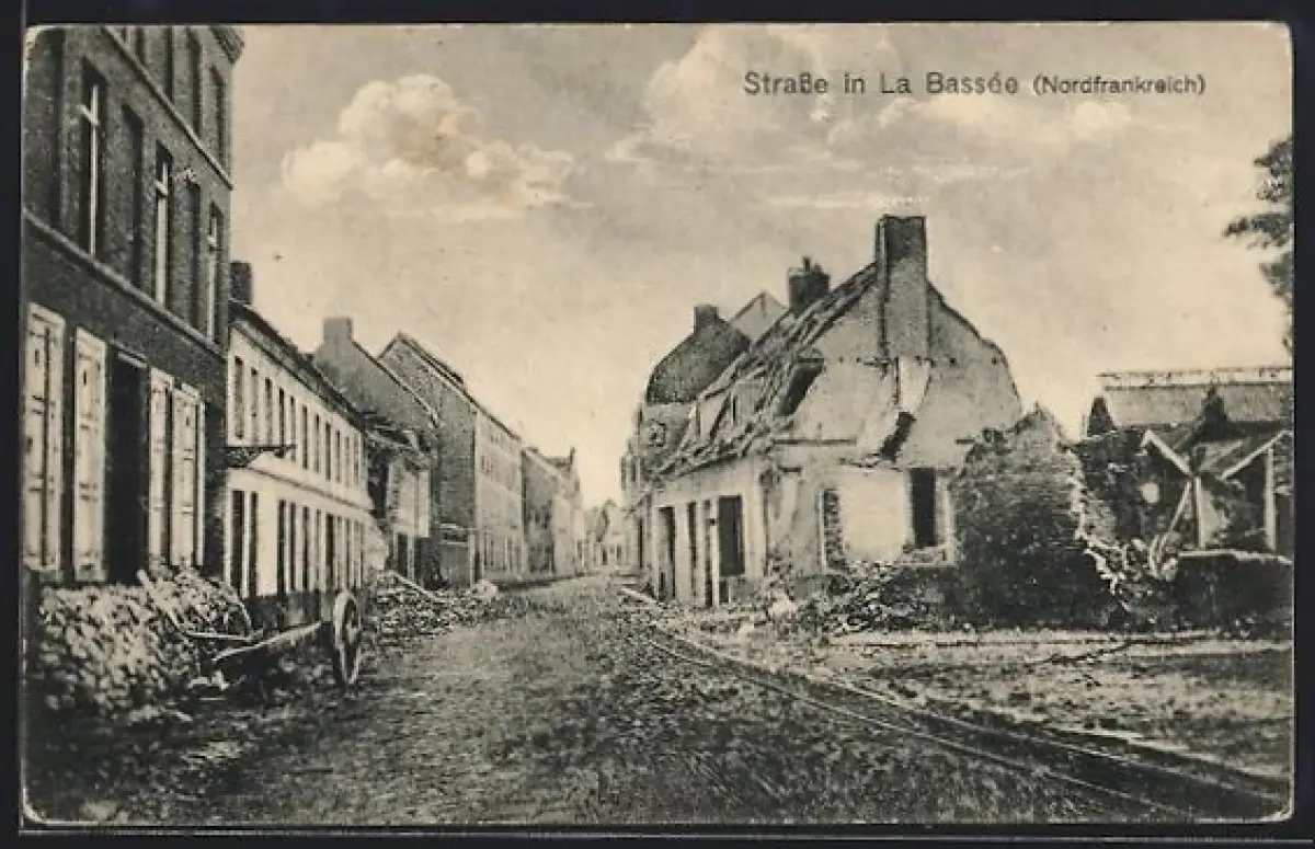 AK La Bassée, Strassenpartie mit zerstörten Häusern, Weltkrieg 1914-16