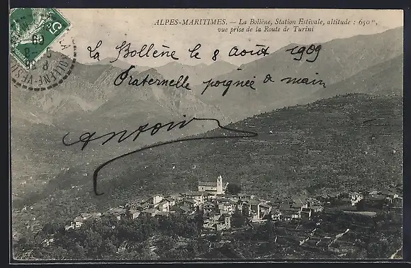 AK La Bollène, Vue de la station estivale depuis la Route de Turini