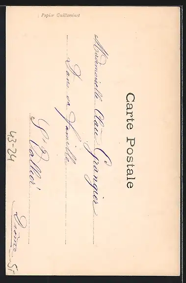 Personenbezogene Daten auf der Rückseite der Karte wurden durch blauen Textmarker unkenntlich gemacht. Die blauen Stellen sind auf die Vorderseite durchgeweicht und wirken sich negativ auf das Postkartenfoto aus