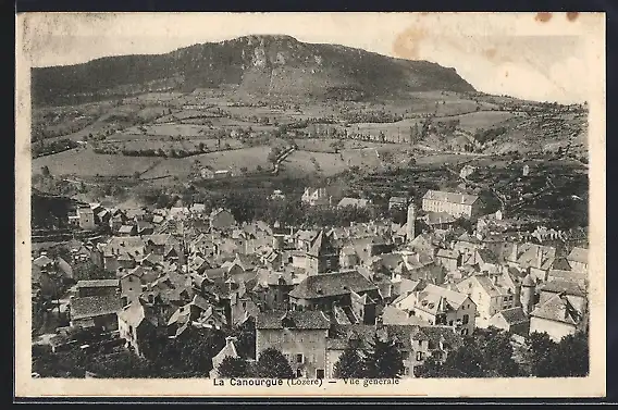AK La Canourgue, Vue générale du village et des collines environnantes
