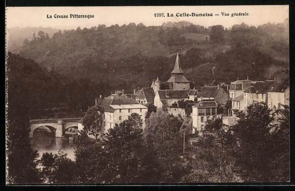 AK La Celle-Dunoise /Creuse, Vue générale du village pittoresque et de son pont sur la rivière