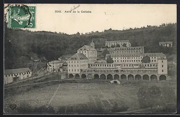 AK La Cellette, Vue de l`Asile entouré de collines boisées