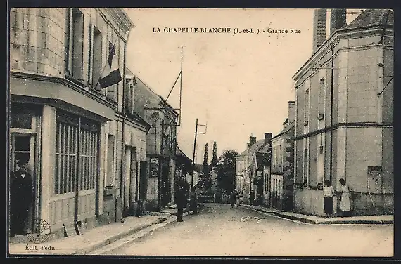 AK La Chapelle-Blanche, Grande Rue animée avec passants et bâtiments historiques