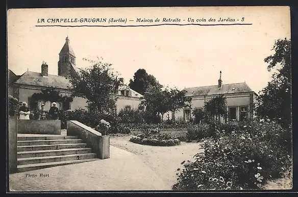 AK La Chapelle-Gaugain, Maison de Retraite, Un coin des Jardins