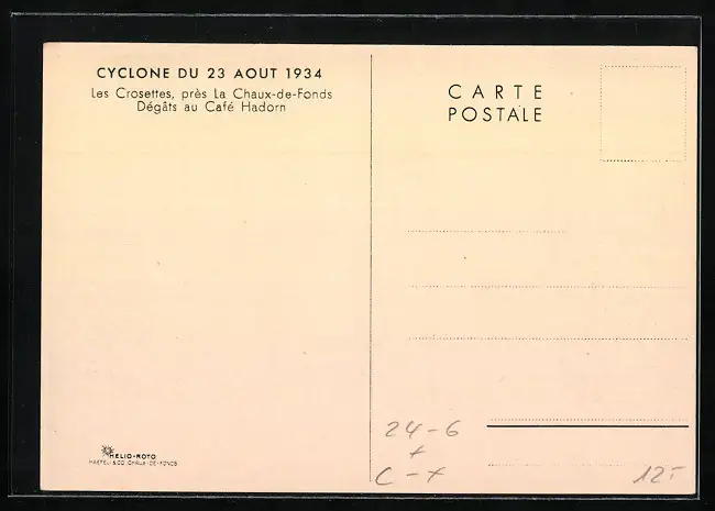 AK La Chaux-de-Fonds, Les Crosettes, Cyclone du 23 Aout 1934, Dégats au Cafe Hadorn